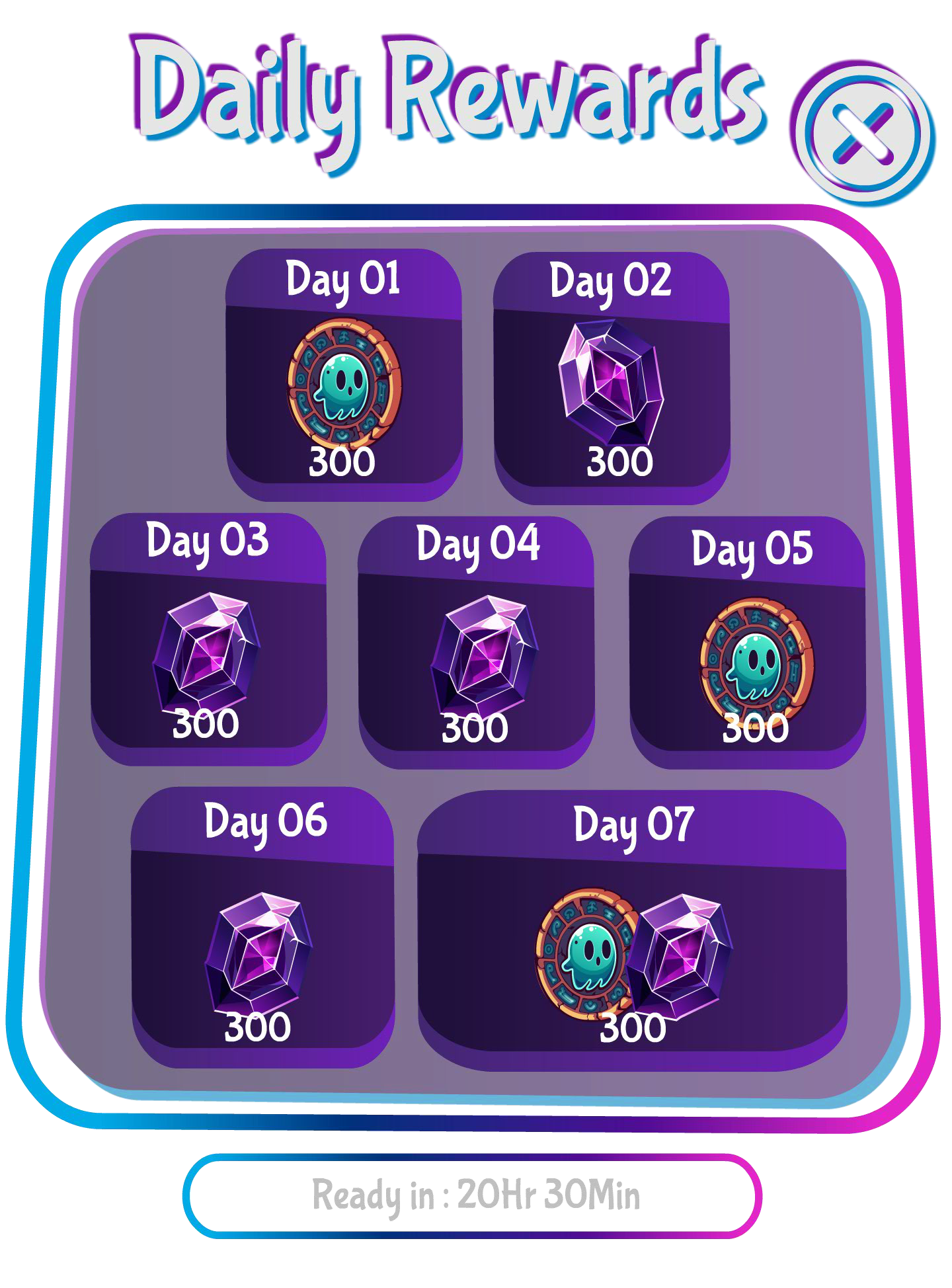 Return every day to claim bonus gems, soul coins, outfit fragments, and more.